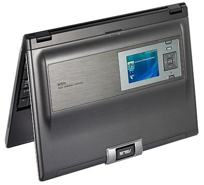 Asus apporte un petit plus à sa gamme de PC portable W5F en intégrant sur la coque externe, un petit écran LCD couleurs.