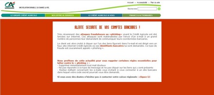 En tout cas, le crédit agricole est victime depuis plusieurs jours de cette attaque, les internautes reçoivent un mail pour une mise à jour de leur coordonnées bancaires, le lien contenu dans le mail ressemble à un lien de Crédit Agricole régionale mais conduit sur le site des pirates.