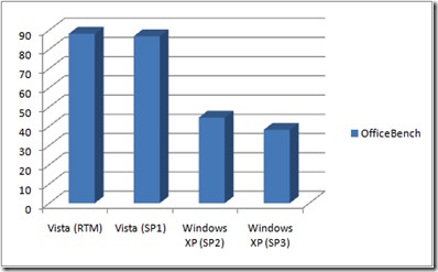 Parmi eux, notre confrère Neowin.net a réalisé un benchmark avec officebench qui devrait conforter l’avis de tous ceux qui préfèrent Windows XP à Windows Vista. En effet, si le benchmark réalisé sous Windows Vista SP1 n’apporte quasiment pas de performance en plus par rapport à Windows Vista RTM, le passage de Windows XP SP2 à Windows XP SP3 s’avère quant à lui très bénéfique avec un gain de près de 10%.
