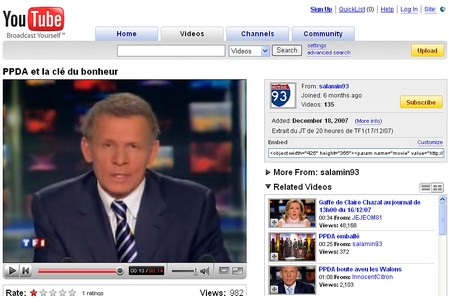 TF1 ne semble pas vraiment apprécier le fait de voir ses propres programmes diffusés sur les sites de vidéos en ligne. Après avoir saisi la justice dans une affiare l’opposant à DailyMotion le 17 décembre dernier, le groupe de télévision détenu par Bouygues s’en prend aujourd’hui à YouTube et demande pas moins de 100 millions d’euros de dommages et intérêts pour contrefaçon, parasitisme et concurrence déloyale.