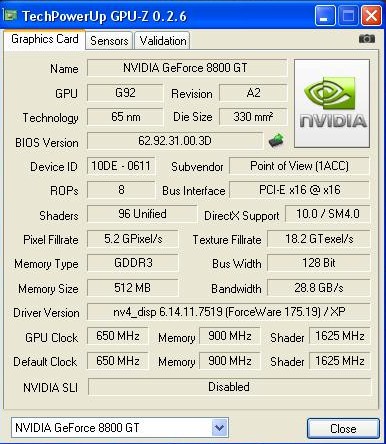 Pour couronner le tout, Point Of View semble avoir commercialisé des GeForce 8800 GT pourvu de 96 streaming processors au lieu de 112 le tout avec un interfaçage mémoire en 128 bits au lieu de 256.