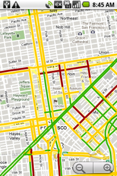 Google Maps, le service de cartographie bien connu de Google, s’enrichit d’une nouvelle fonction dédiée au traffic. Pour l’instant disponible uniquement aux USA, cette fonction est simple : Une fois la fonction activée dans le service de géolocalisation "My Location", l’utilisateur est invité à rentrer des informations pour que les autres utilisateurs puissent en profiter.