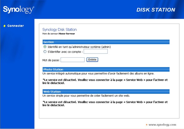 Comme votre modem/routeur ou votre box, le Synology DS107 se pilote via une interface web. A la fin de l’installation du logiciel (voir page précédente), la fenêtre suivante a du s’ouvrir dans votre navigateur internet.  Â