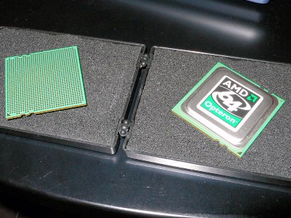 Notre confrère Xbit-Labs a publié, alors que nous vous annoncions il y a quelques temps les photos du socket F, les première photos de l’AMD Opteron pour Socket F. Le nombre des contacts (1207) est de plus en plus important, ceux-ci adoptant le principe du Socket LGA775 des derniers Intel P4, afin d’éviter les malencontreux pins tordus.