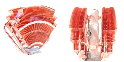 Compatible avec la gamme Intel Core, Pentium, Celeron et AMD A64 standard, FX et X2, il arbore une robe toute en cuivre et 4 heatpipes. Doté de fines ailettes, il est surmonté d’un ventilateur de 110mm tournant de 1300 à 2500 RPM pour un flux d’air maximum de 86.5 CFM (entre 16 et 24dB de nuisance sonore).