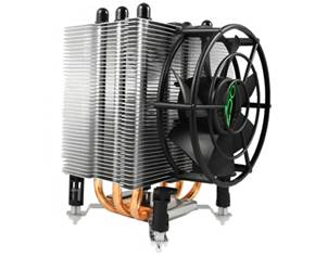 Il est composé d’une base en cuivre et de 3 caloducs qui transfèrent la chaleur aux multiples et denses ailettes d’aluminium. Un ventilateur de 92 mm à vitesse réduite s’occupera de refroidir l’ensemble. Le constructeur insiste sur son efficacité malgré sa taille compacte qui permettra en outre de le loger dans des boitiers de taille réduite.