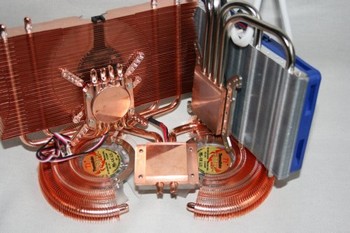 Zalman VF1000 à gauche, Coolink GFXChilla à droite et le Thermaltake DuOrb