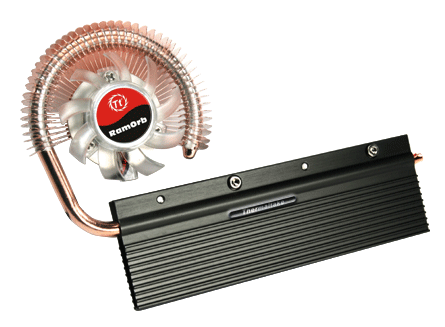 Heureusement Thermaltake pense à nous en proposant un nouveau système de refroidissement actif pour barrettes mémoires, le RamOrb.