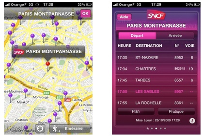 L’iPhone fait tout, c’est bien connu (sauf le café, enfin pour l’instant). Après une longue attente, la Société nationale des chemins de fer français propose une application iPhone gratuite, nommée SNCF Direct, proposant entre autres fonctionnalités de consulter en temps réel le tableau des départs et celui des arrivées de 600 gares françaises.
