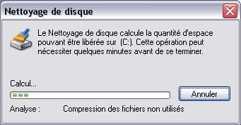 Sélectionnez tout d'abord la partition de Windows (par défaut c:) puis attendez que Windows calcule l'espace disque pouvant être libéré :
