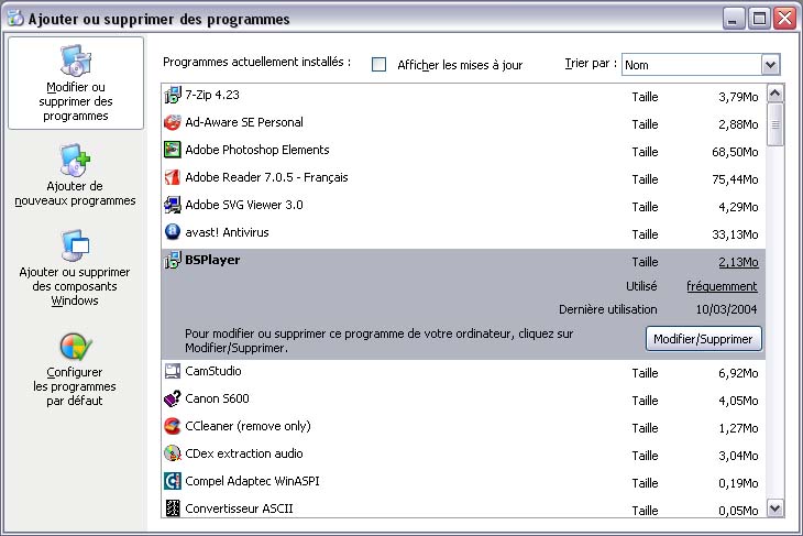 Il convient avant toute autre chose de désinstaller proprement les programmes inutiles que l'on a installé et que l'on n'utilise plus. L'utilitaire ajout/suppression de programmes se trouve dans le panneau de configuration de Windows :