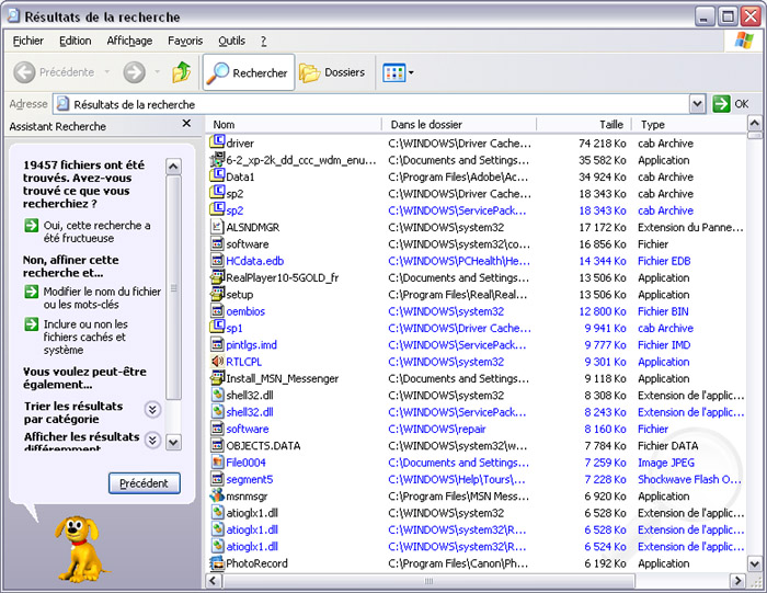 Pour rechercher les plus gros fichiers de vos disques durs, c'est très simple. Ouvrez le menu démarrer puis une fenêtre de recherche. Sélectionnez Tous les fichiers et tous les dossiers. Dans le champ Une partie ou l'ensemble d'un nom de fichier, tapez *.*. Windows va alors inscrire tous les fichiers à droite. Il vous suffit maintenant de cliquer sur Taille pour classer les fichiers par taille.