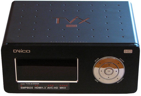 Ensuite, ceux qui connaissent les anciennes générations de jukebox multimédias de DVico comme le TViX-HD M-4000 noteront finalement assez peu de différences avec cette nouvelle version. Cependant, l’utilisation de la puce Sigma Design SMP8635 en lieu et place de la EM8623 qui équipait le TViX-HD M-4000, apporte quelques nouveautés, comme le support du HDMI 1.3 ou encore le support de quelques formats HD supplémentaires comme le Dolby TrueHD ou les DTS HD. On notera aussi que la connection ethernet passe au standard gygabit, un choix plutôt judicieux si l’on considère le poids des fichiers vidéos au format HD.
