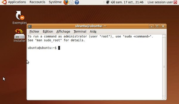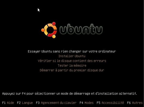 Le LiveCD choisi est celui d’Ubuntu, version 9.04, les images qui composent ce dossier en sont issues