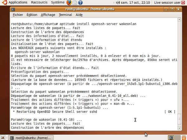 3) - Installer le serveur SSH, le programme permettant de transformer le PC en véritable passerelle de routage des connexions. Au passage, nous installons également un petit outil permettant d’allumer un ordinateur du réseau à distance, WAKEONLAN (voir bonus en fin de dossier).