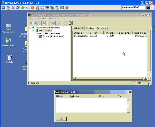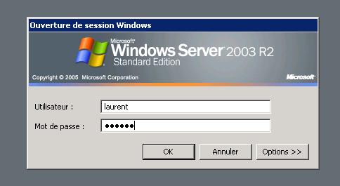 Le bureau à distance s’ouvre alors avec la fenêtre de connexion sur la session windows :