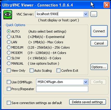 Avec ULTRAVNC : lancez ULTRAVNC partie client (Viewer) et entrez l’adresse suivante pour accéder au serveur :