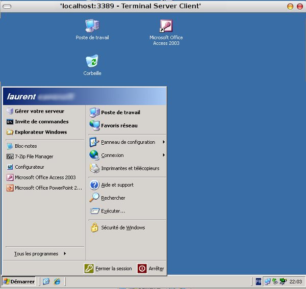 Nous avons simplement remplacé le port 5900 (de VNC) par le port 3389 servant au bureau à distance.