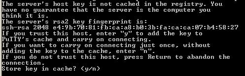 Répondez « Y » et validez, c’est une vérification de connexion, une empreinte d’identification du serveur distant qui va être stockée en local.