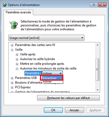 Image 35.Dans la nouvelle fenêtre qui apparait, désactive le paramètre du minuteur de sortie de veille comme sur l'image puis valide par OK