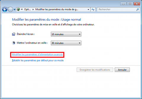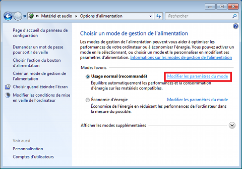 choisir un mode de gestion de l'alimentation de la fenêtre qui apparait, clique sur