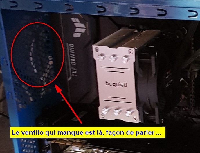 deux ventilos de base fournis en façade avant voir la photo plus le ventirad.