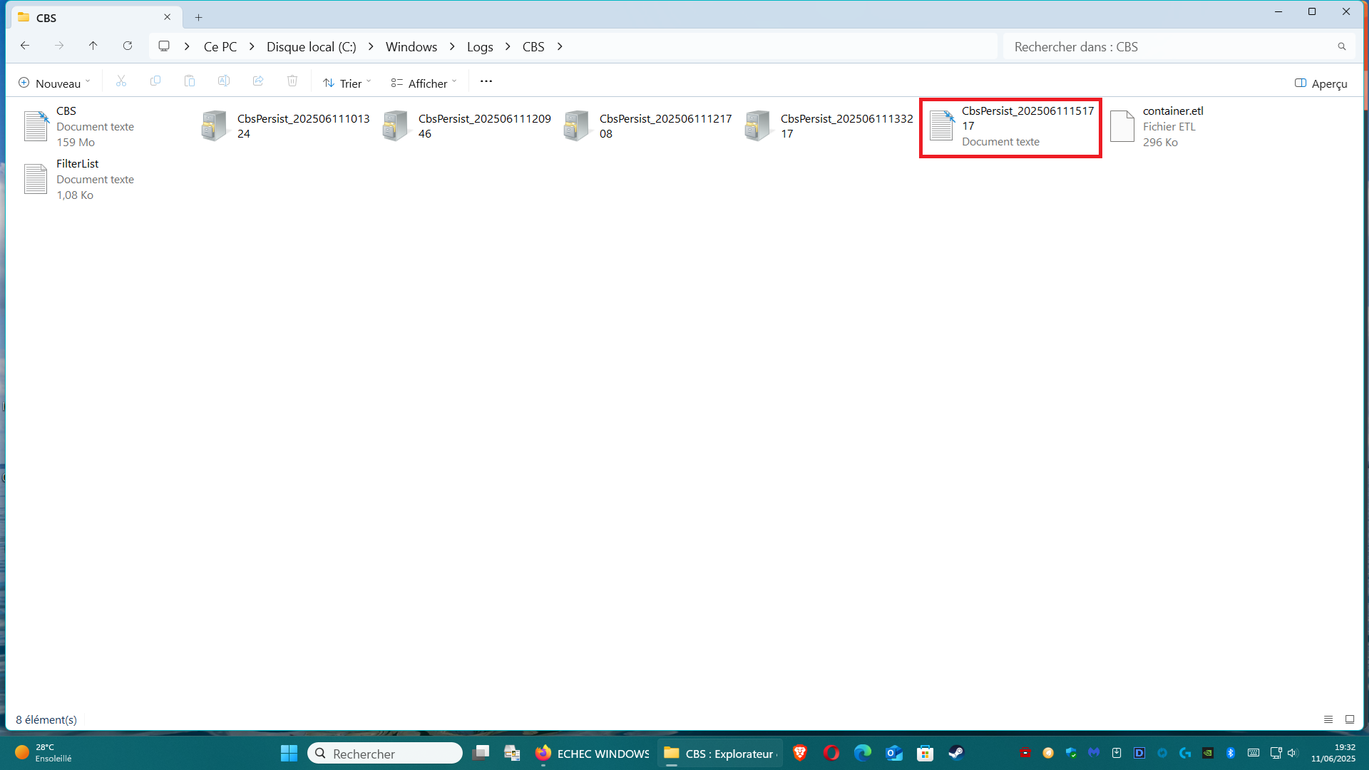 1ᵉʳ fichier CBS document texte selon ta capture donc le premier à gauche :